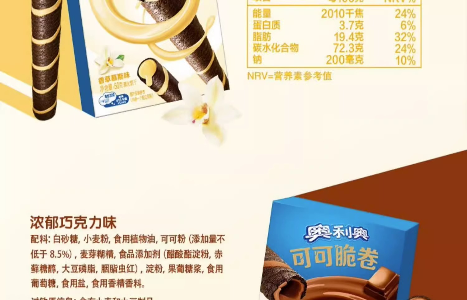 奥利奥可可脆卷50g夹心饼干多口味可选【香草慕斯味、 ...