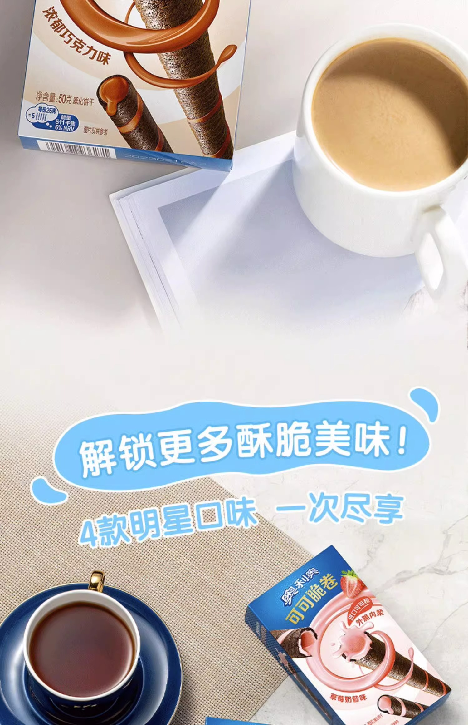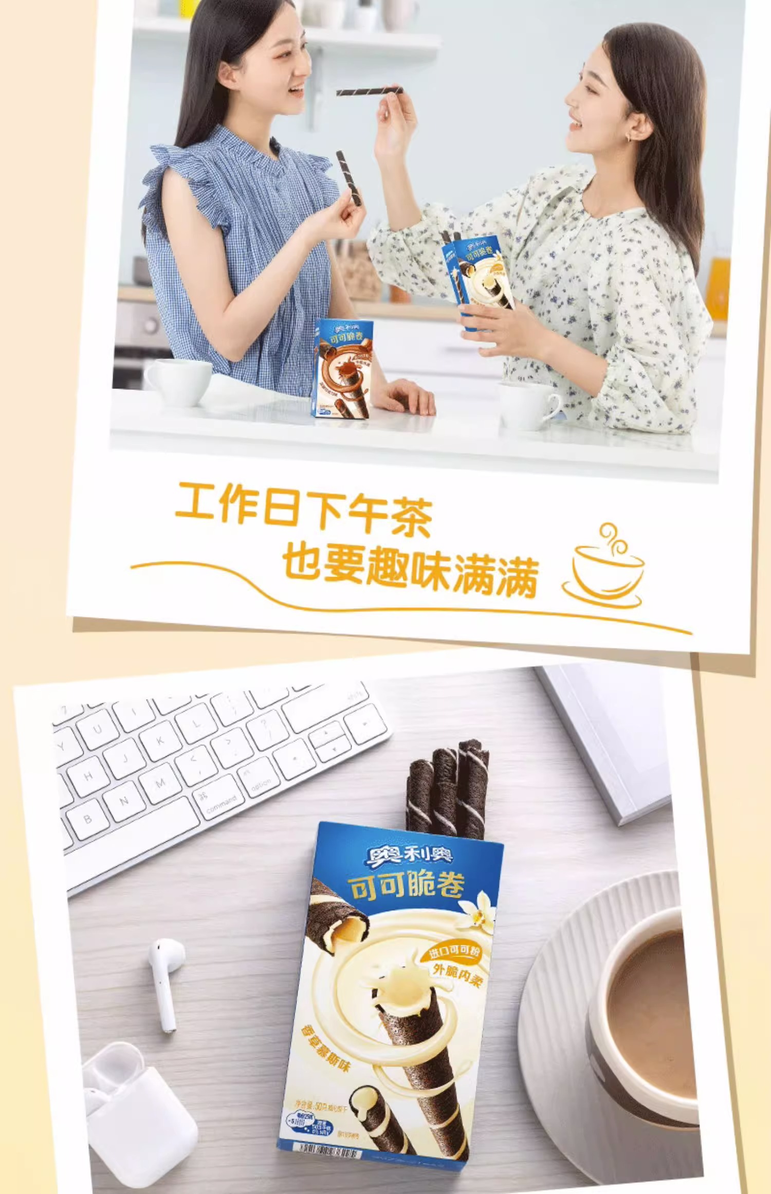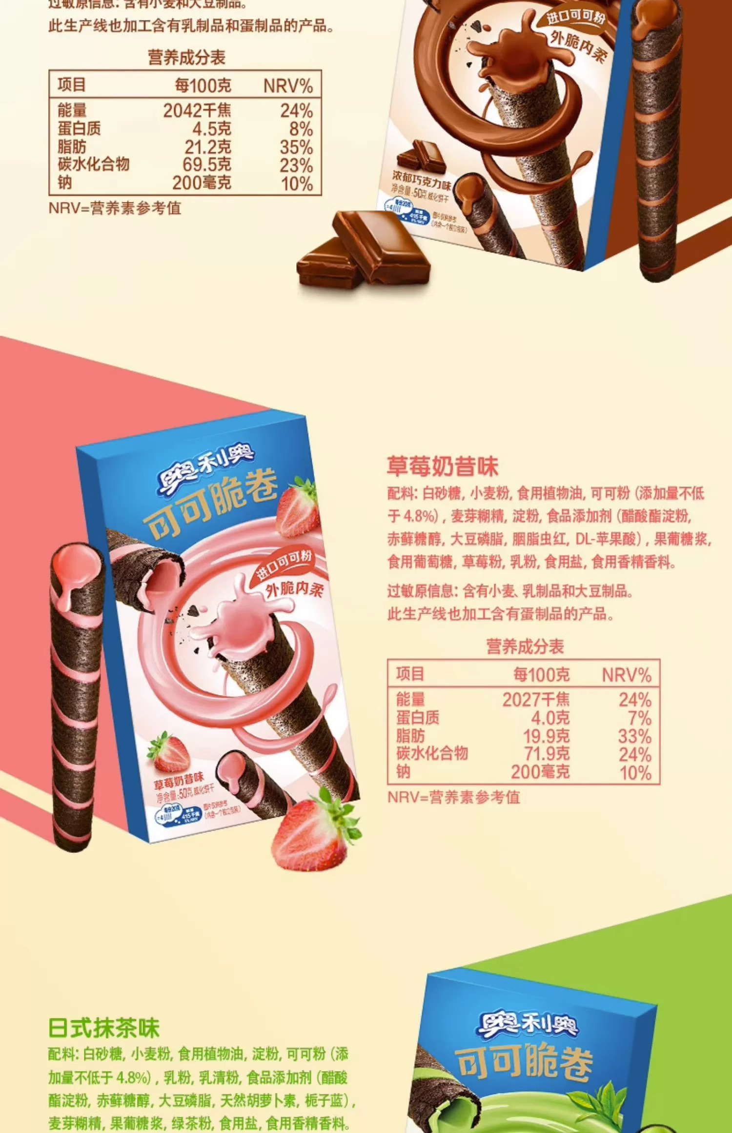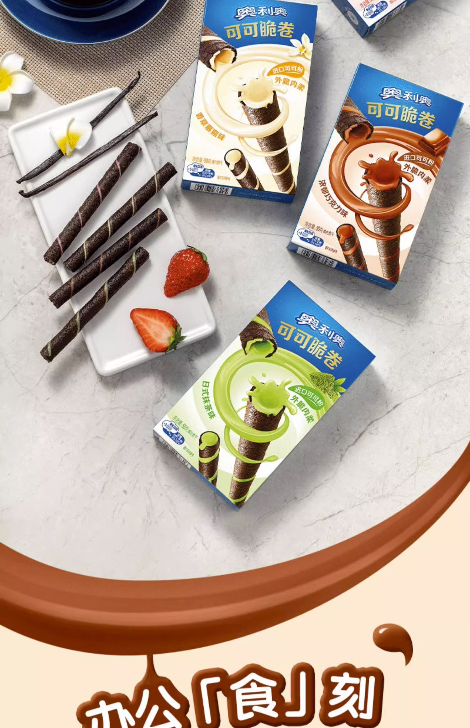 奥利奥可可脆卷50g夹心饼干多口味可选【香草慕斯味、日式抹茶、巧克力、草莓奶昔味】