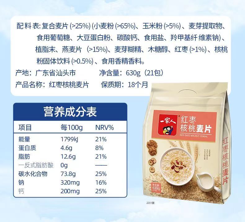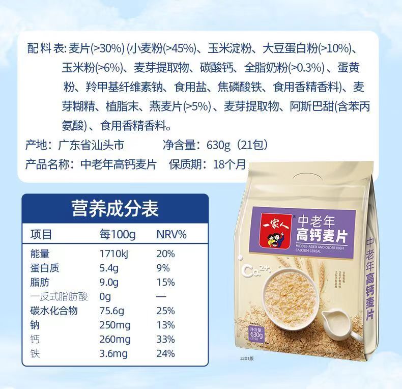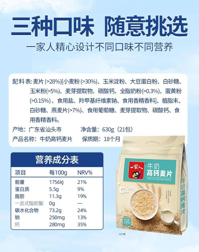一家人营养麦片牛奶高钙麦片免煮即食 630g/包 ...