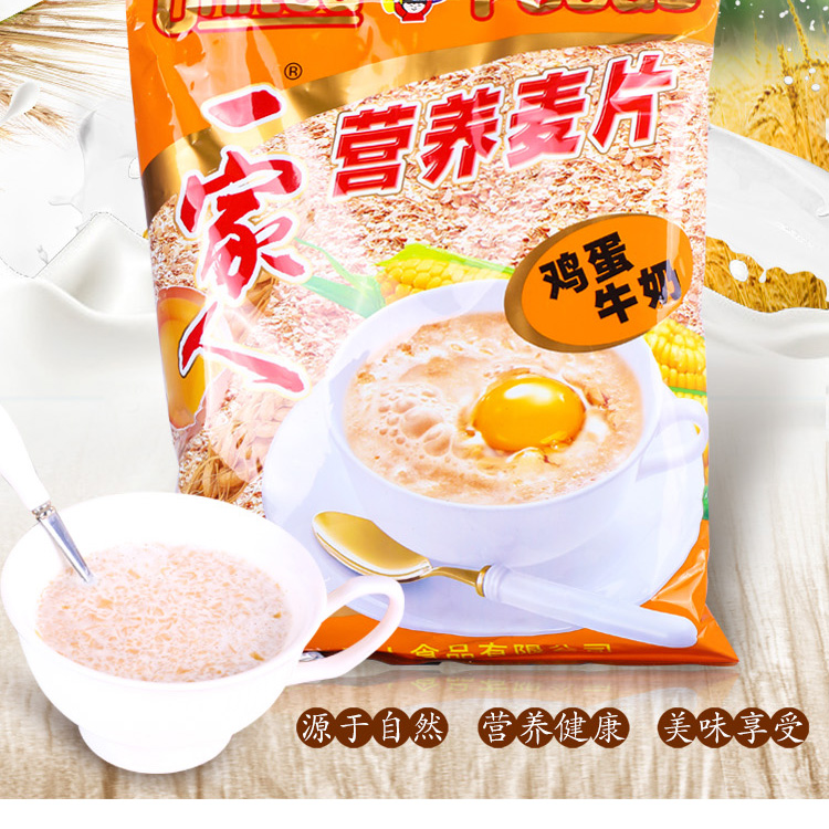 一家人麦片即食免煮鸡蛋加牛奶营养燕麦片 600g/袋 ...