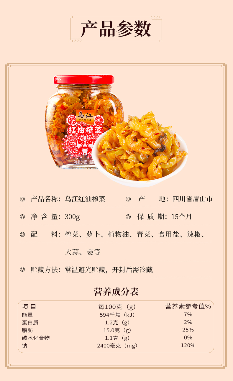 只要10.98元 乌江涪陵红油榨菜 300g/瓶装