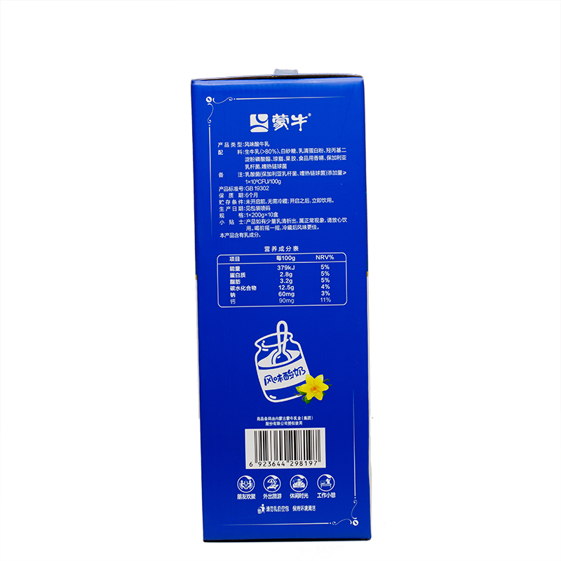 蒙牛纯甄巴氏杀菌香草味风味酸牛乳利乐钻 200g×10包/件