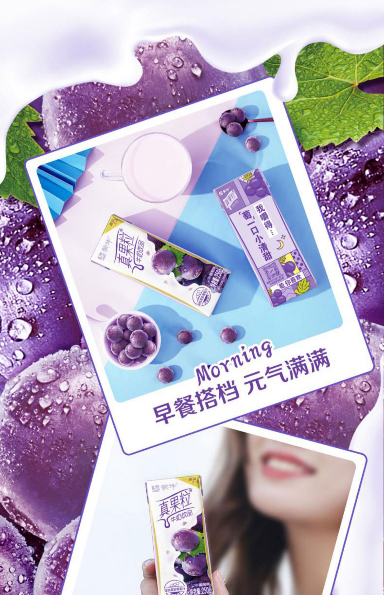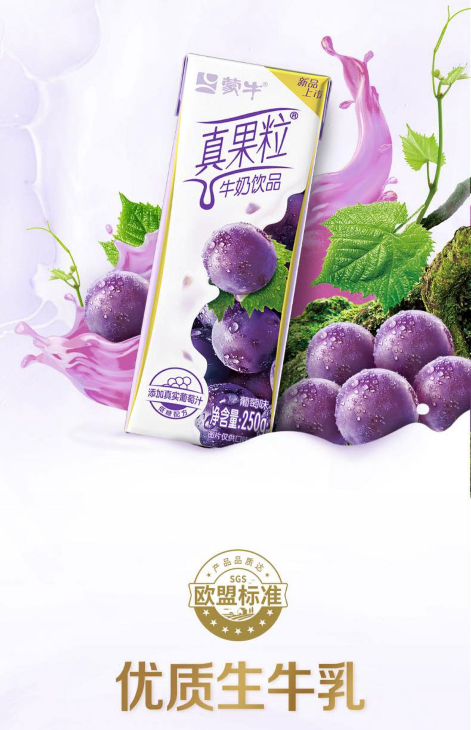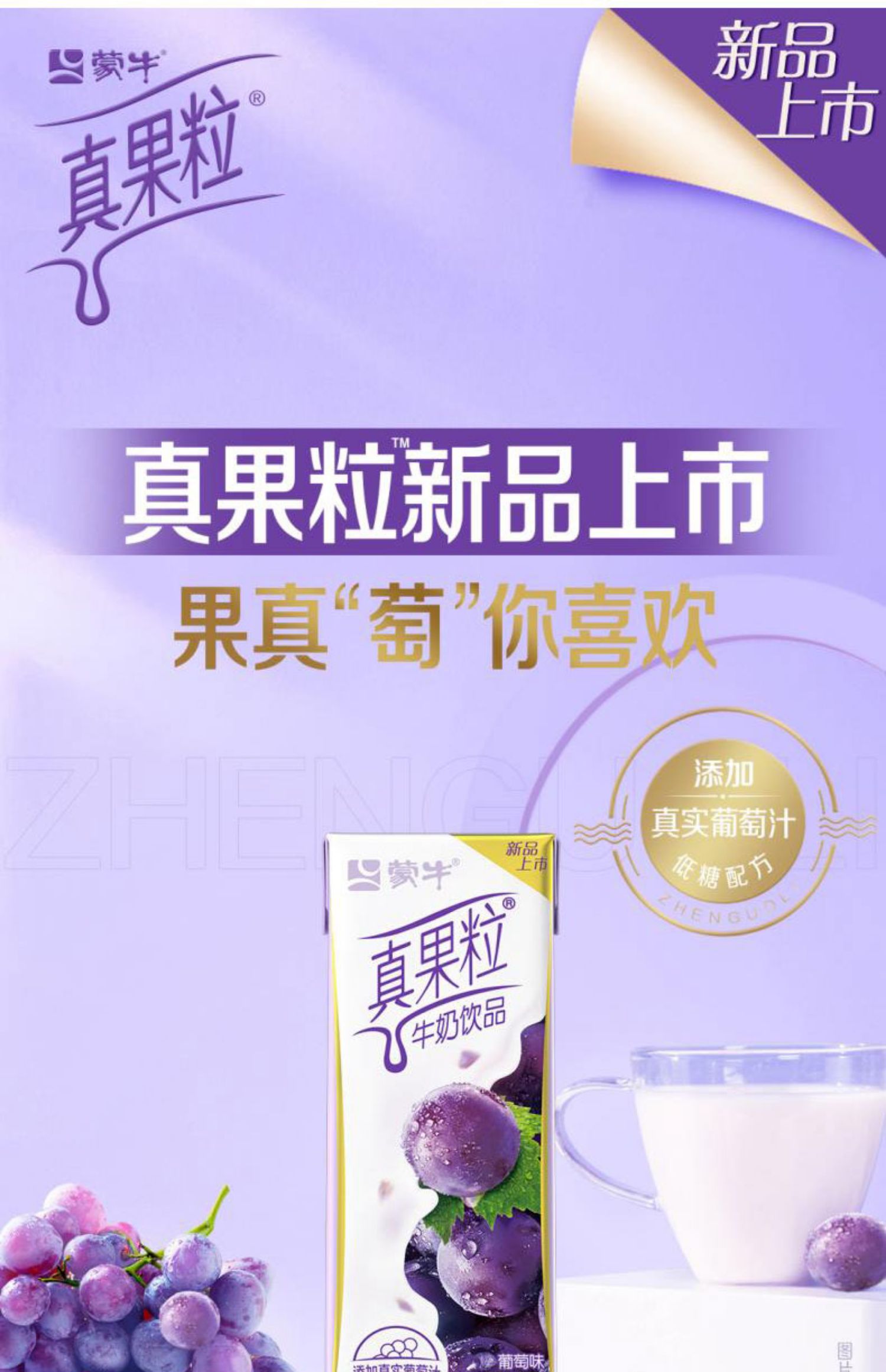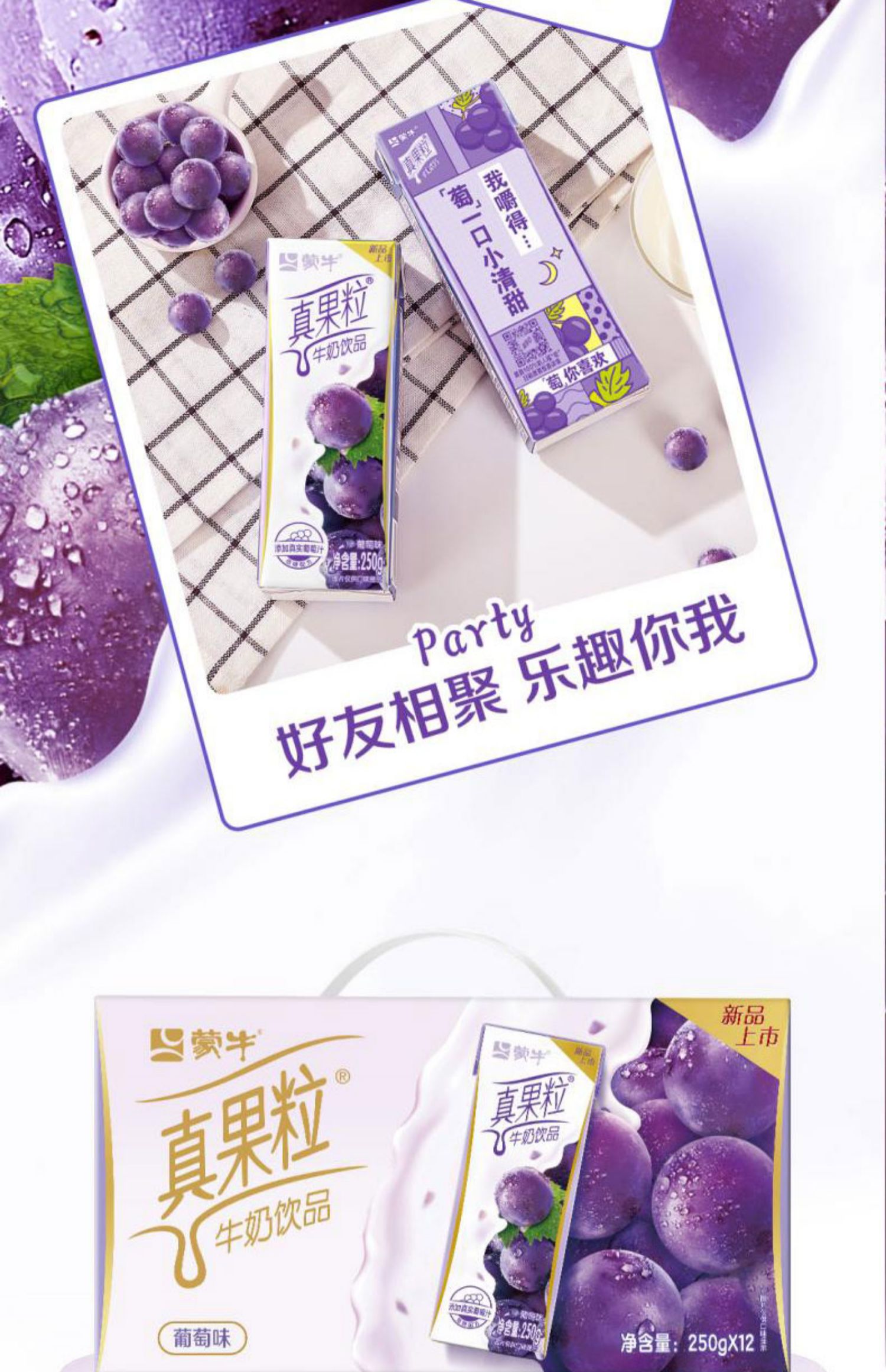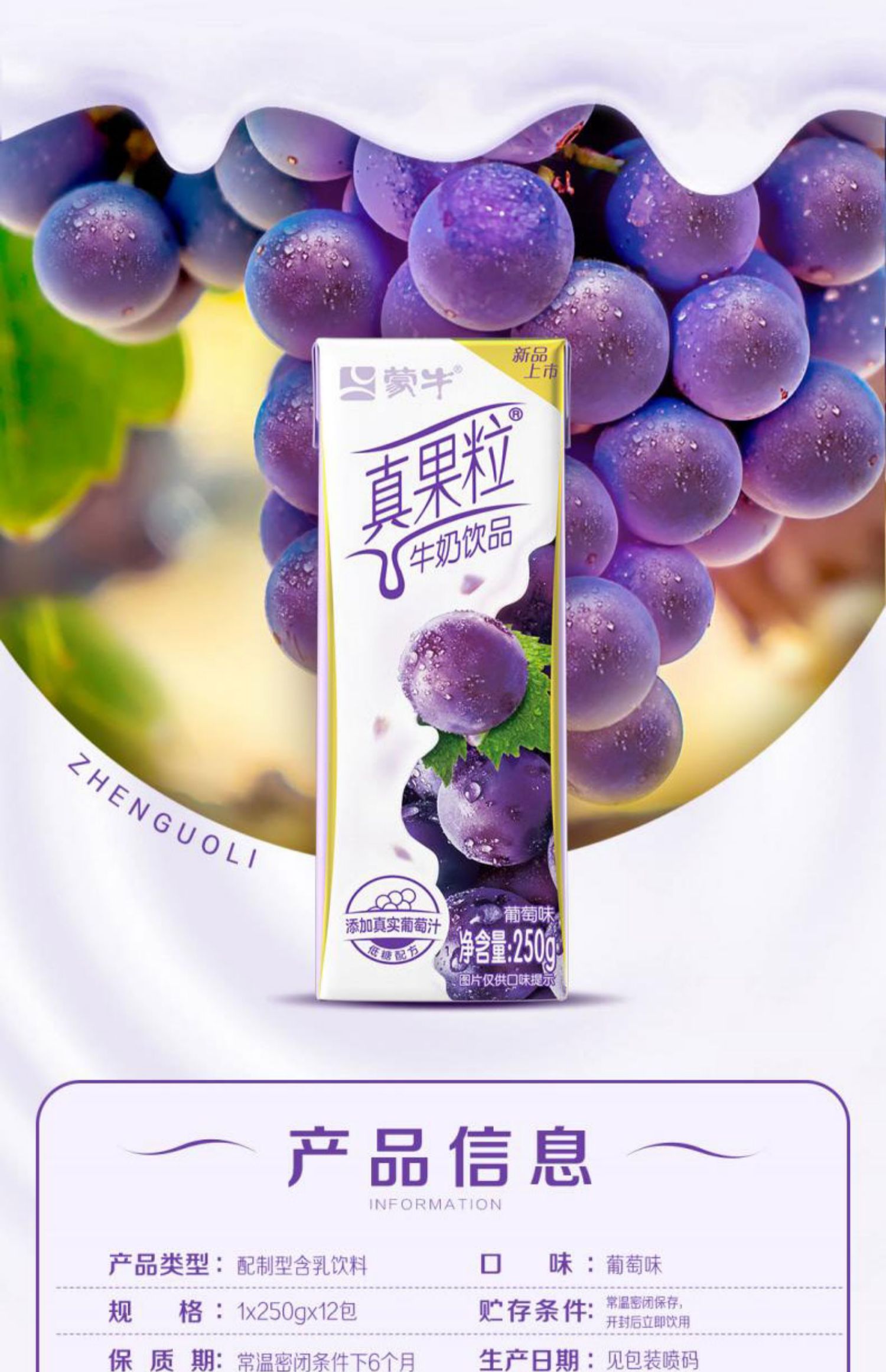 蒙牛真果粒葡萄味牛奶饮品早餐奶 250ml*12盒/件 ...