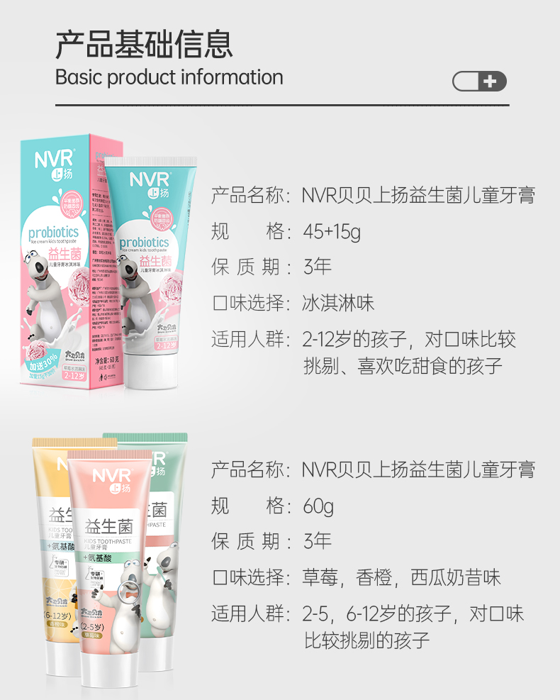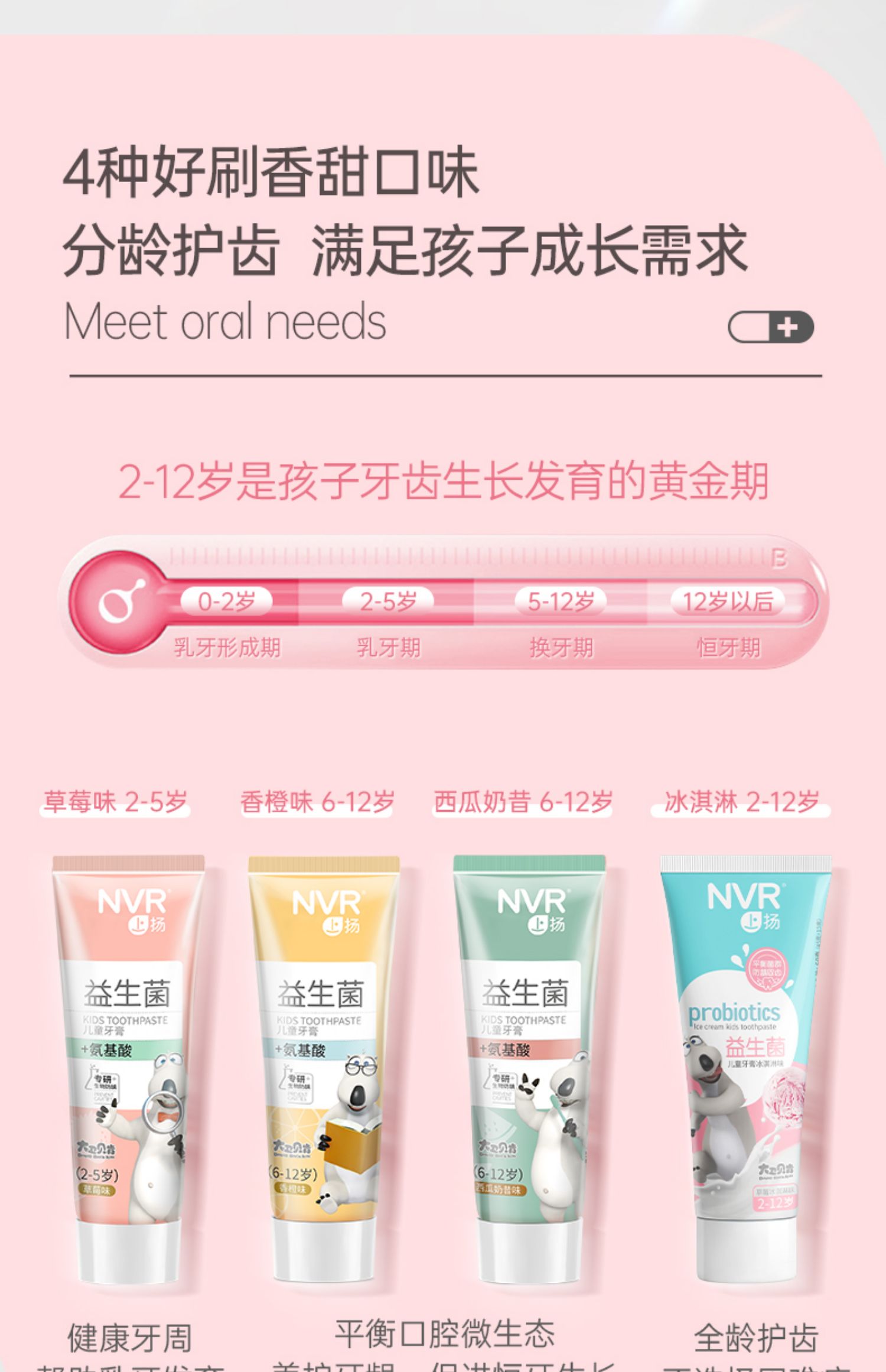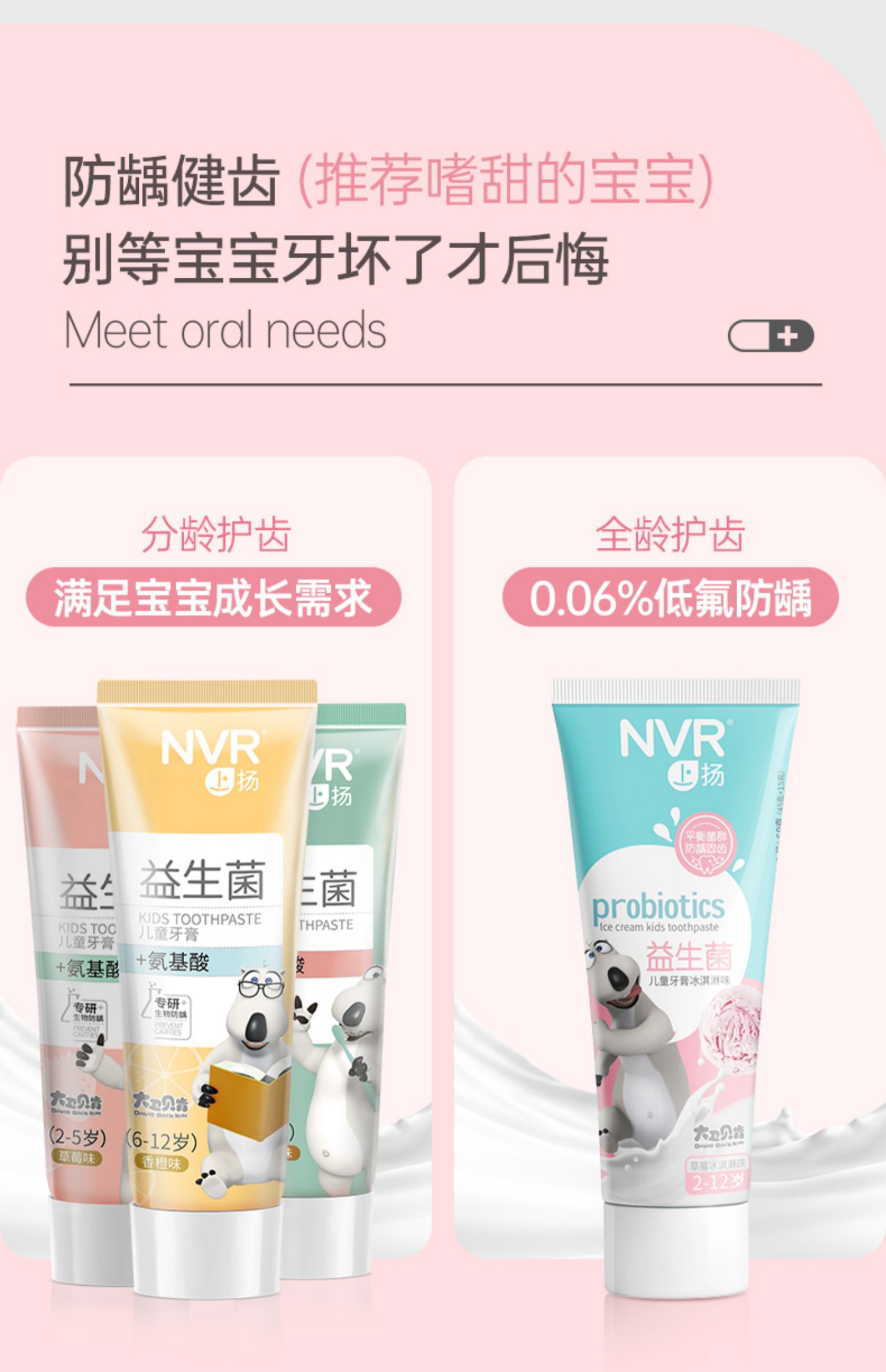 上扬益生菌儿童牙膏 冰淇淋水蜜桃 60g/支 ...