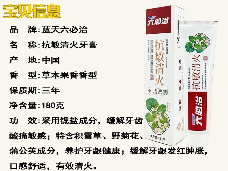 六必治四季草本牙膏清火抗敏 180g/支 草本果香味 ...