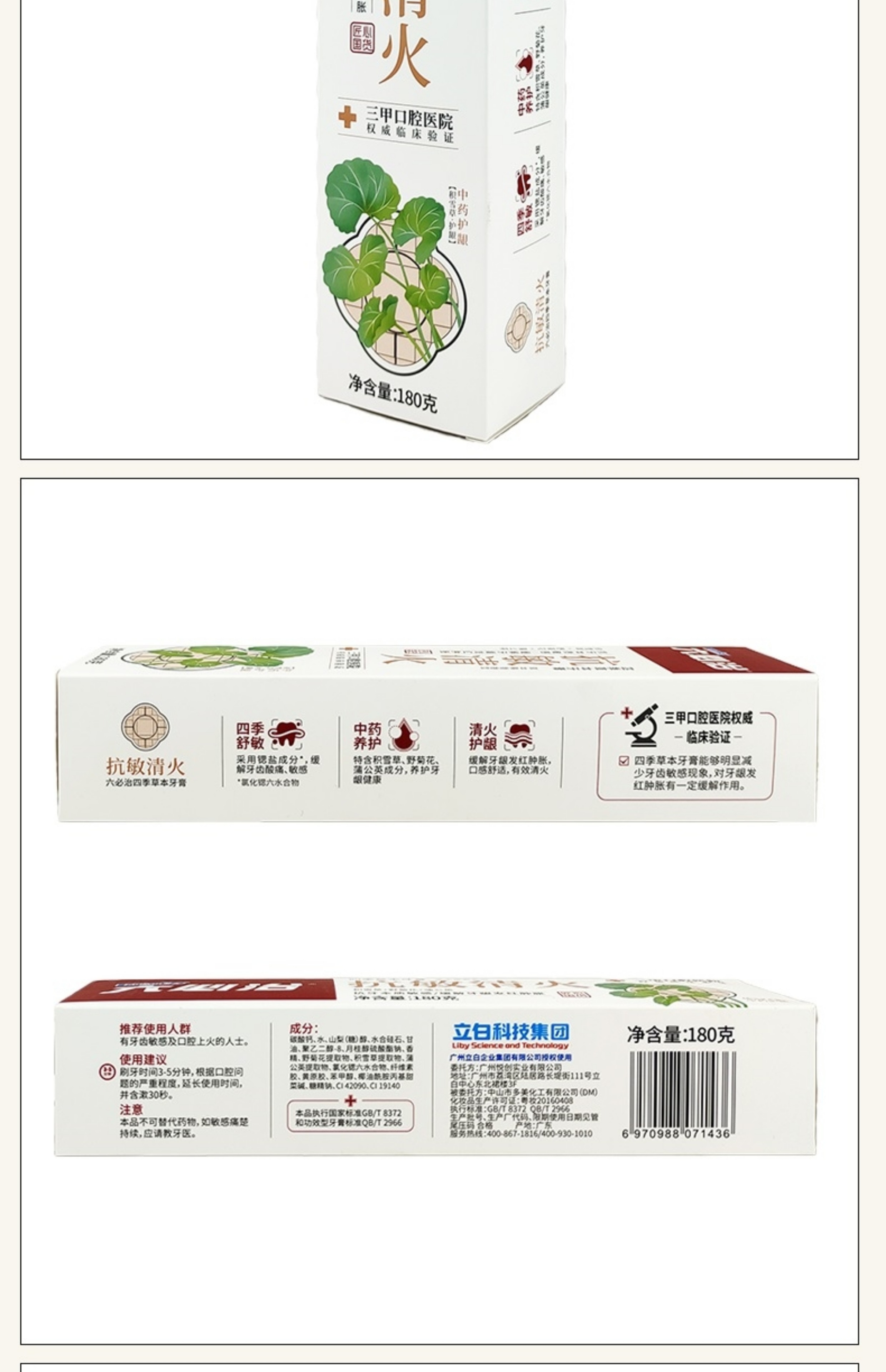 六必治四季草本牙膏清火抗敏 180g/支 草本果香味
