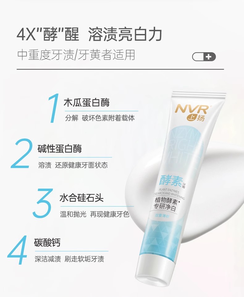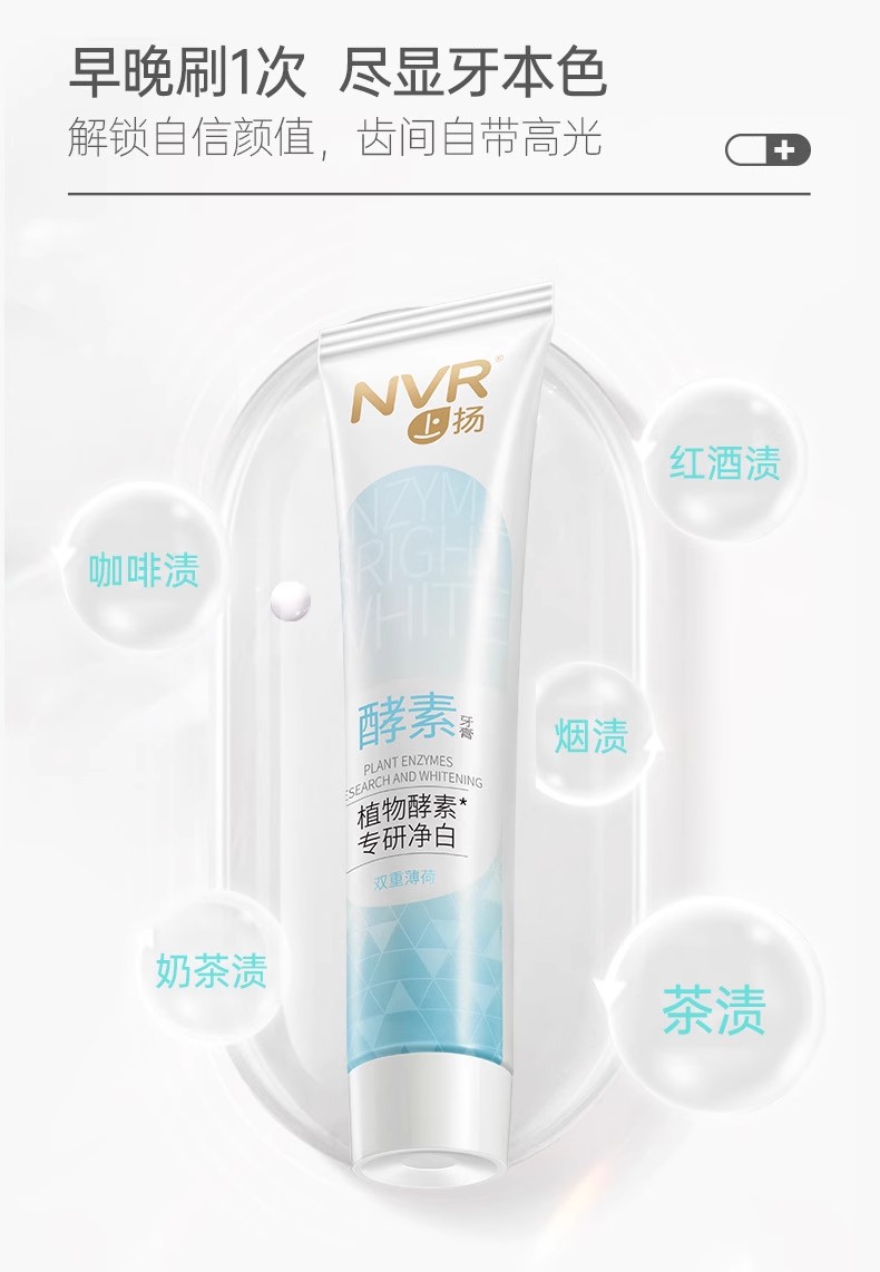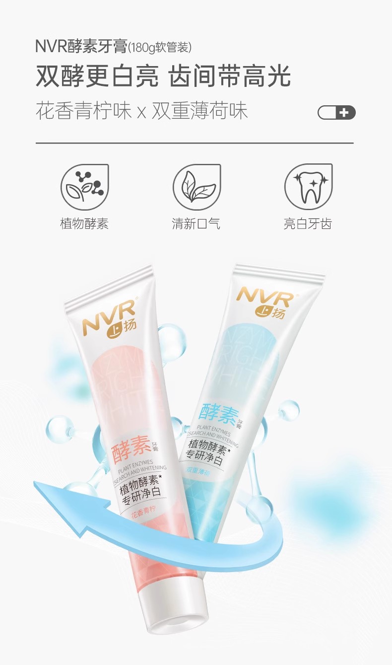 只要24.9元 NVR上扬酵素牙膏 180克/支 (花香青柠味&双重薄荷味)