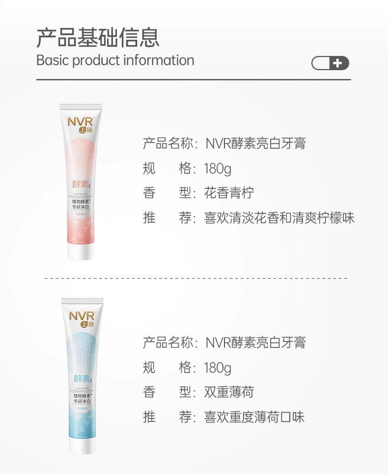 NVR上扬酵素牙膏 180克/支 (花香青柠味&双重薄荷味)