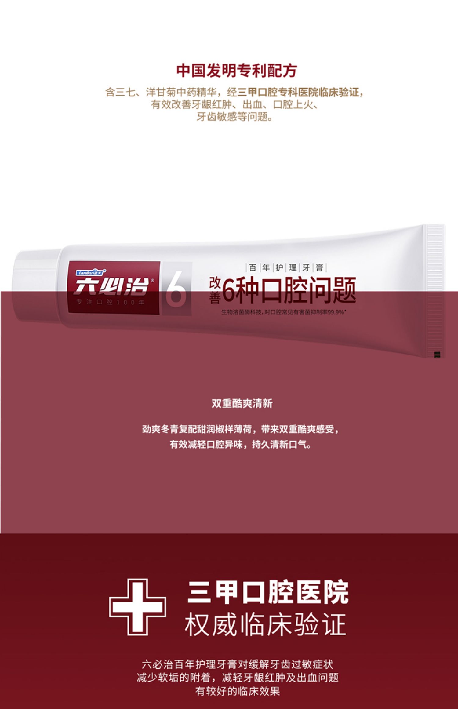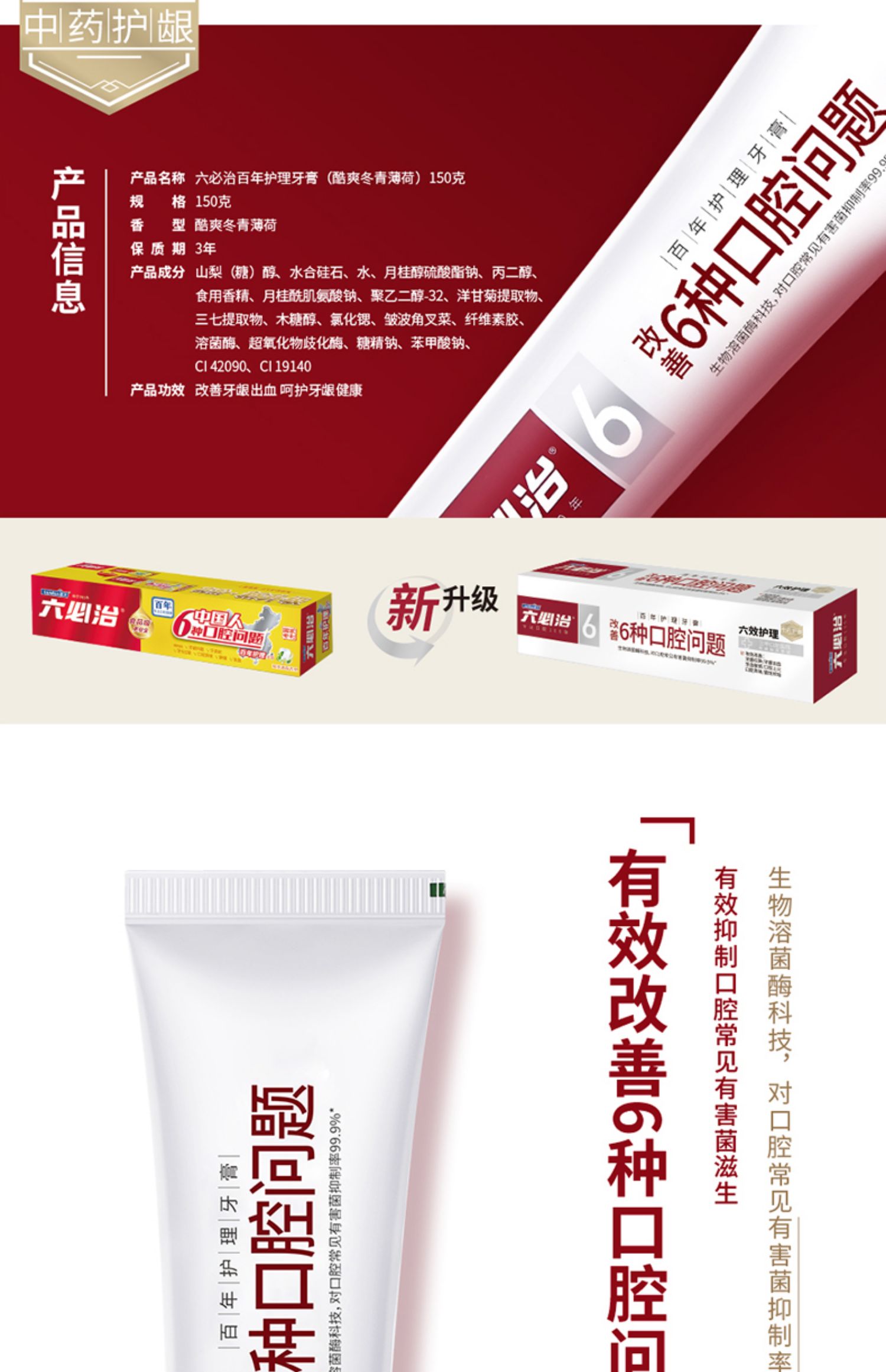 蓝天六必治牙膏百年护理牙膏 150g/盒 双重薄荷清新 ...
