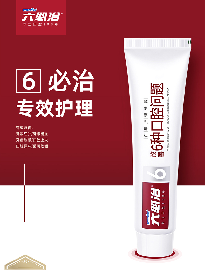 蓝天六必治牙膏百年护理牙膏 150g/盒 双重薄荷清新口气亮白去渍