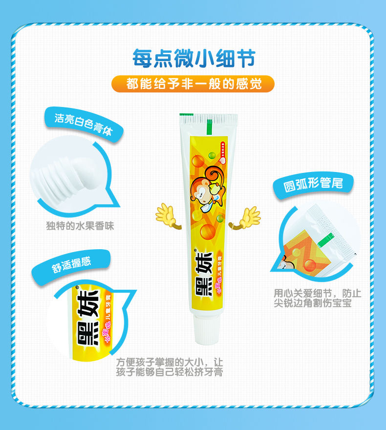 黑妹儿童牙膏水蜜桃香味 42g/支 1-6岁固齿防蛀牙清新 ...